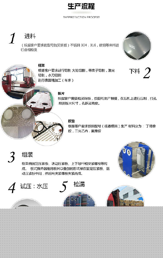 板式換熱器是由一系列具有一定波紋形狀的金屬片疊裝而成的一種新型高效換熱器。各種板片之間形成薄矩形通道,通過(guò)板片進(jìn)行熱量交換。板式換熱器是液—液、液—汽進(jìn)行熱交換的理想設(shè)備。它具有換熱效率高、熱損失小、結(jié)構(gòu)緊湊輕巧、占地面積小、安裝清洗方便、應(yīng)用廣泛、使用壽命長(zhǎng)等特點(diǎn)。在相同壓力損失情況下,占地面積為管式換熱器的三分之一,熱回收率可高達(dá)90%以上。