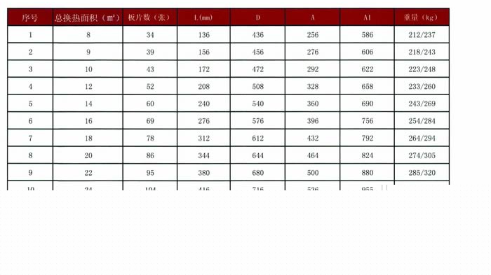 單片換熱面積:0.238㎡